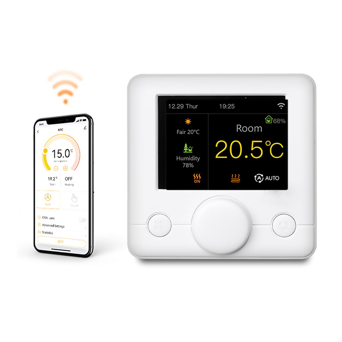 Изготовленный из огнестойкого ПК, корпус термостата обеспечивает надежную защиту и долговечность при эксплуатации.